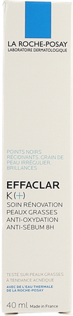 De Effaclar K (+) is een verzorgende dagcrème met een combinatie van micro-exfoliërend LHA en Salicylzuur, en een anti-oxiderend complex om de huid meteen glad en vrij van mee-eters te maken. Matterend effect tot 8 uur. Geschikt voor een gemengde tot vette huid met terugkerende zwarte puntjes en een onregelmatige huidtextuur.